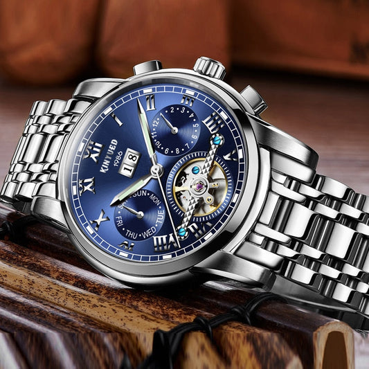 New Men Kinyued Stainless Steel Watch Band Automatic Mechanical Business Wrist Watch Luxury Brand Waterproof Watch for Men