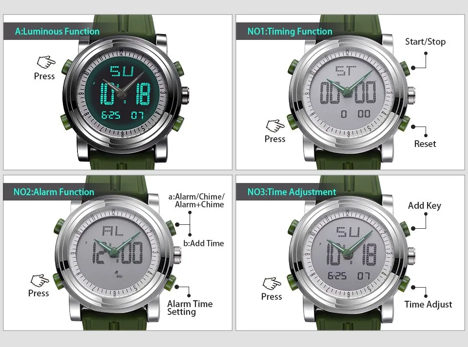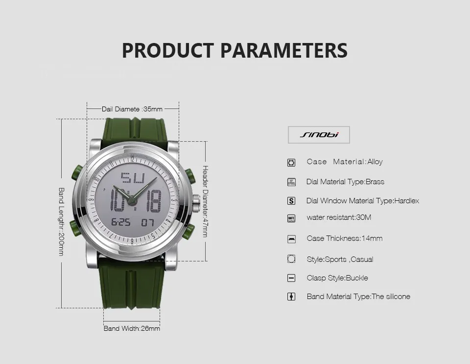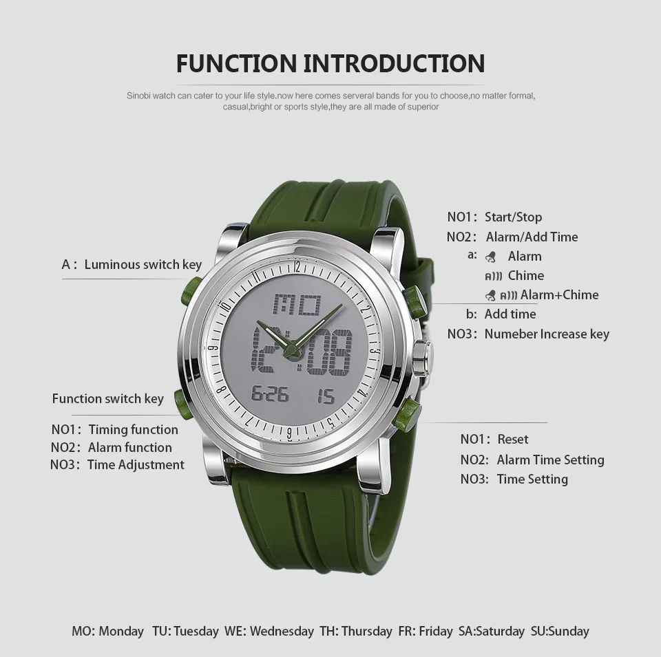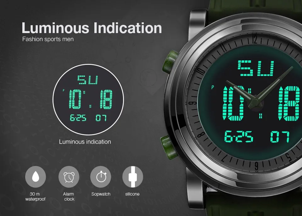 Sports Watches Men Dual Display Analog Digital LED Electronic Quartz Wristwatches Men Multifunctional Waterproof Watch